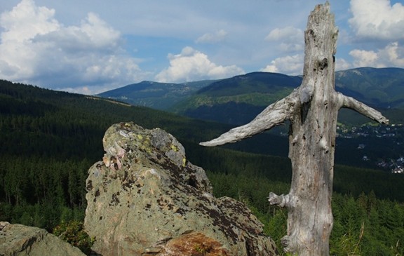 Skupina B přes Horní Mísečky na Harrachovu skálu a Vodovodní cestou do Špindlu.